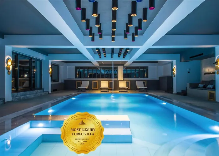 Villa Athos Kokkínion cu 7 dormitoare, este situat la 25 de minute de mers pe jos de Muzeul Kapodistrias și oferă un jacuzzi, o saună și o piscină interioară. Vila cu 7 băi, situată la 5 km de la Plaja din Dassia, îi invită pe oaspeți să se bucure de vedere spre munte de pe o terasă, cu o piscină.